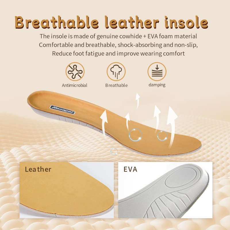 Ægte okselæder + EVA-skum indersål - åndbar, stødabsorberende og skridsikker. Holder fødderne friske kilometer efter kilometer.