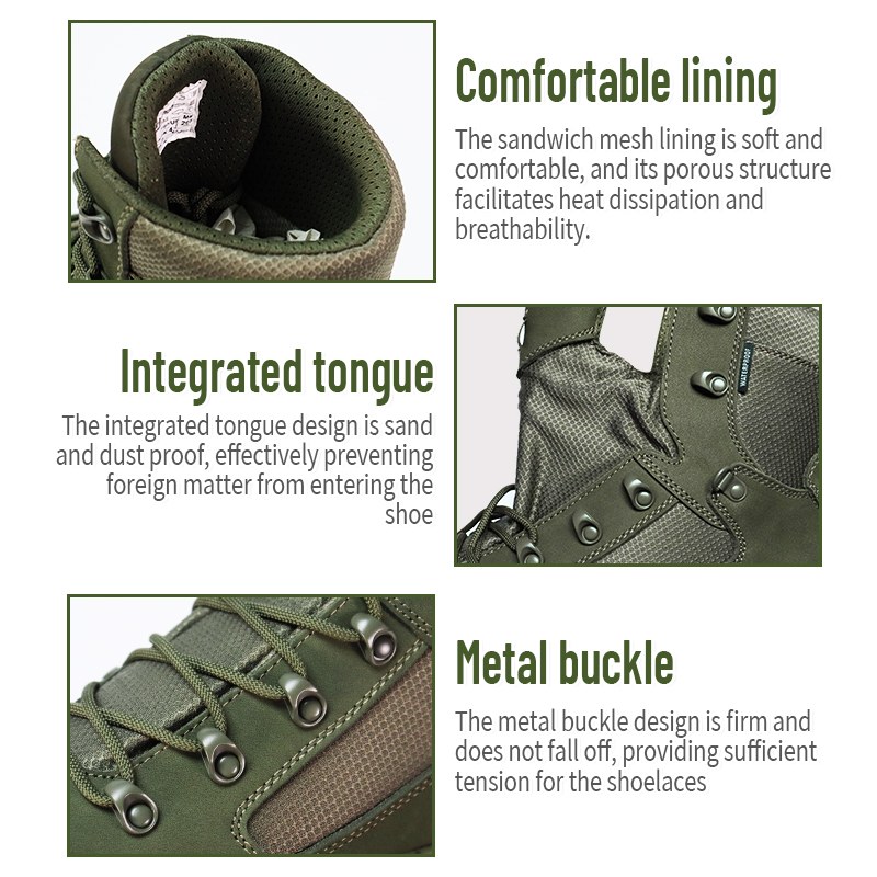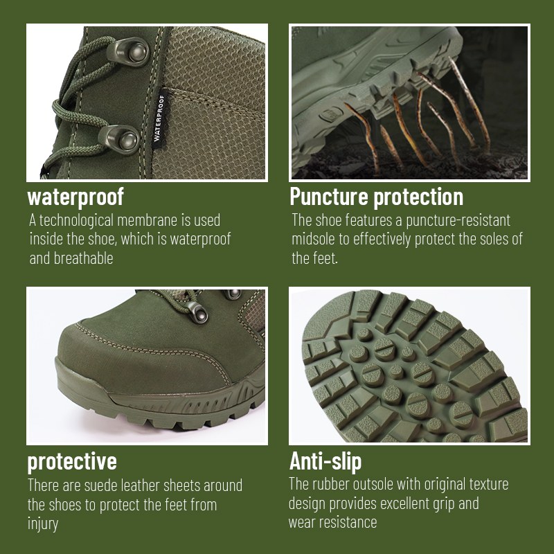 Disse punkteringssikre vandtætte kampstøvler er på lager og klar til at sendes med ordrer fra kun 10 par. For flere detaljer eller prisforespørgsler, er du velkommen til at kontakte os når som helst. Tilpasning er også tilgængelig med en minimumsbestilling på 800 par. Og denne model har følgende fordele: