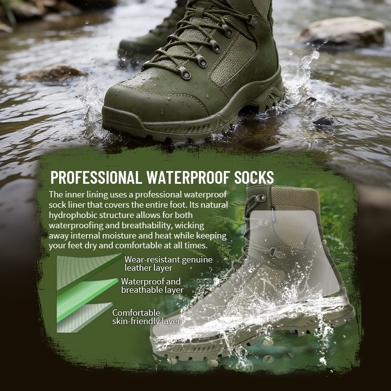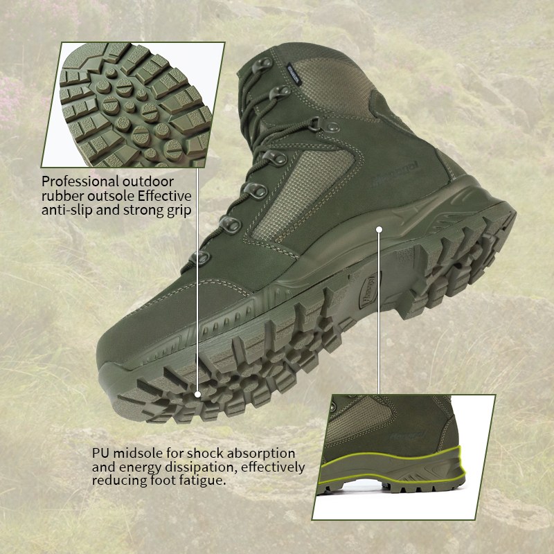 Ujævnt terræn. Skjulte farer. Uforudsigelig grund. De punkteringssikre vandtætte kampstøvler er bygget til de øjeblikke, hvor du ikke har råd til at se ned og bekymre dig. Konstrueret med en punkteringssikker mellemsål, der stopper søm, glas og skarpe snavs, plus fuld vandtæt beskyttelse, der holder dig i bevægelse gennem våde forhold. Send os forespørgsel for yderligere information.