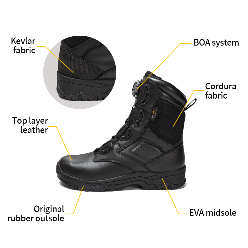 Disse hurtig-on/off system politistøvler er på lager og klar til forsendelse, med ordrer fra kun 10 par. For flere detaljer eller prisforespørgsler, er du velkommen til at kontakte os når som helst. Tilpasning er også tilgængelig med en minimumsbestilling på 800 par. Og denne model har følgende fordele: