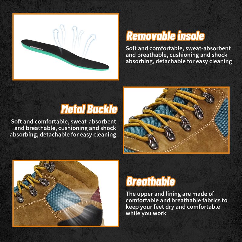Overdelen og foret er lavet af behagelige og åndbare stoffer for at holde dine fødder tørre og komfortable, mens du arbejder.